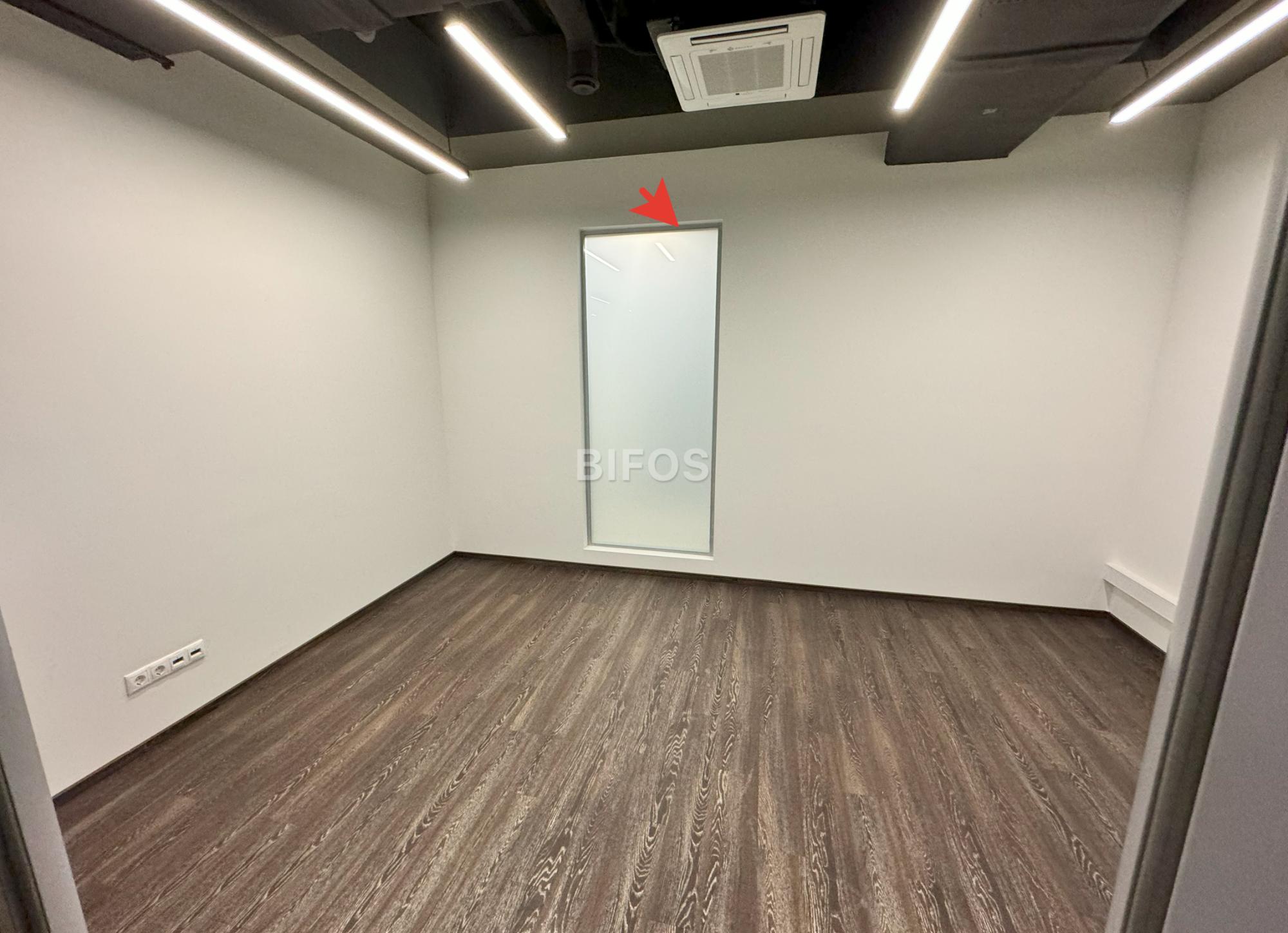 Окна на улицу, приточно-вытяжная вентиляция, центральное кондиционирование.