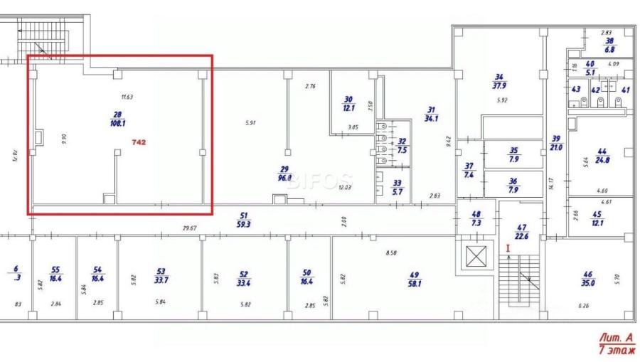7-й этаж, открытая планировка, сан-узел на этаже.