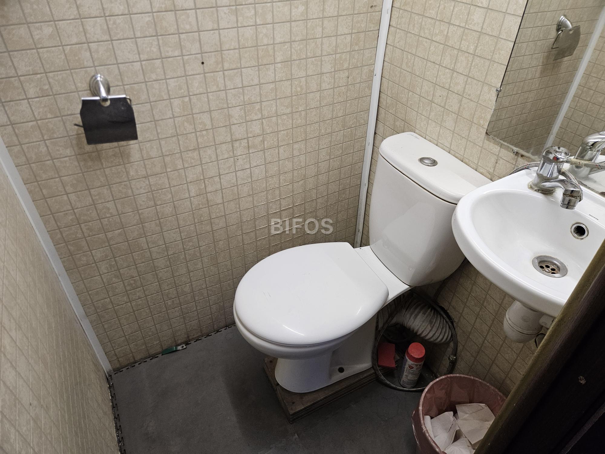 Свой сан-узел, подсобка-офис, стеллажи частично остаются.
