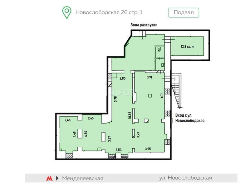 Аренда торгового помещения 132,8 м2 на ул. Новослободская, д. 26С1 (2 минуты пешком от метро Менделеевская). 1-я линия!